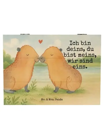 Die Holzkiste von Mr. & Mrs. Panda ist ein wunderschöner Platz, um all deine wertvollen Schätze und Erinnerungen zu bewahren. Sie ist nicht nur funktional, sondern verleiht jedem Raum einen Hauch von Eleganz. Die mit liebevollen Motiven und Sprüchen bedruckte Oberfläche bringt Freude in dein Zuhause. Du kannst die Kiste für alles Mögliche nutzen, sei es für persönliche Fotos, Erinnerungsstücke von besonderen Ereignissen oder als kreatives Geschenk für deine Freunde und Familie. Robust gefertigt aus Holzfaser, verspricht sie Langlebigkeit und Nachhaltigkeit. Die speziellen Einschlagscharniere machen es leicht, die Kiste zu öffnen und wieder zu schließen, sodass du immer schnell an deine Schätze kommst. Pflege sie einfach mit einem feuchten Tuch, um sie schön und gepflegt zu halten.Liebesbeweis Capybara – Romantische Idee: Die herzerwärmende Darstellung von zwei Capybaras auf diesem bezaubernden Motiv von Mr. & Mrs. Panda zeigt die Zuneigung auf wundervolle Weise. Sie berühren sich sanft an der Nase, sodass sich ihre Schnauzen zu einem herzförmigen Muster formen. Über ihnen schwebt ein kleines, rotes Herz, das ihre Liebe wunderschön symbolisiert. Die handgezeichneten Kuscheligen Gefährten sind in sanften Brauntönen gehalten und strahlen Gelassenheit und Freude aus. Mit dem berührenden Spruch ‚Ich bin deins, du bist meins, wir sind eins.‘ vermittelt dieses Motiv eine tiefe Botschaft der Liebe und Einheit und ist daher die perfekte Geschenkidee für Verliebte und Romantiker, sei es zum Jahrestag, Valentinstag oder einfach als Liebesbeweis.Tierliebe pur erleben: Die ‚Small World‘ Kollektion von Mr. & Mrs. Panda lädt dich ein, in eine Welt voller Zauber und Freude einzutauchen. Mit jeder Kreation eröffnet sich eine kleine Geschichte, liebevoll eingefangen in den einzigartigen Aquarellmotiven von Mrs. Panda. Diese Kollektion feiert die Schönheit der Natur und die Vielfalt des Lebens durch die Darstellung entzückender Tiere und begleitet von Sprüchen, die das Herz erwärmen. Ob als Dekoration für dein Heim oder als herzliches Geschenk – die Produkte von Mr. & Mrs. Panda, von Karten über Tassen bis hin zu Deko-Artikeln, sind gefüllt mit Lebensfreude und stellen eine Verbindung zur Natur her. Lasse dich von der ‚Small World‘ Kollektion verführen und finde dein Lieblingstiermotiv begleitet von Messages, die zum Lächeln anregen.Unser Produkt wird gesucht als: Verliebt, erinnerungsbox holz, Holzkiste, Paar, truhe holz, Box, holzschatulle, schatzkiste holz, Kiste, holzschachtel, Kiste mit Deckel, Geschenkidee, Box aus Holz, Du Bist Meins, Liebesbeweis, Verschmolzen, fotokiste, Capybara, schmucktruhe, Ehejubiläum, Holzbox mit Deckel, Holztruhe, schatztruhe, Tierliebe, kiste holz, Erinnerungsbox, Schatulle, Aufbewahrungsbox Holz, Schatzkiste, Aufbewahrungstruhe, geschenkbox mit deckel, Liebe, Beziehung, geschenkbox holz, box holz, holzkästchen, fotobox, Partnertiere, Handgezeichnet, Aufbewahrungsbox aus Holz, Kuschel Capybaras, Geschenkbox, Lustige Sprüche, Truhe, truhe mit deckel, Herzlich, geschenkkiste, Holzbox, schmuckkiste, Holzkiste mit Deckel, Valentinstag, Holz Aufbewahrungsbox, Jahrestag, Ich Bin Deins, Erinnerungskiste, Romantisches Geschenk, Aufbewahrungskiste, Liebesspruch, aufbewahrungskiste mit deckel, schmuckbox