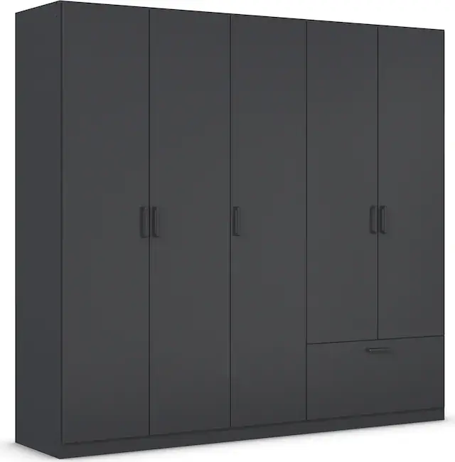 Überzeugt mit schlichtem Design für wohnliche Raumatmosphäre. Optisches Highlight: Griffe in Graumetallic sowie optional abgesetztem Schubkasten in Eiche Artisan. Viel Stauraum durch praktischen Schubkasten. Die Fachböden und Kleiderstangen können variabel in den Schrankelementen eingesetzt und in der Höhe verstellt werden. Made in Germany! Ausgezeichnet mit dem blauen Umweltengel und dem Goldenen M für geprüfte Möbel