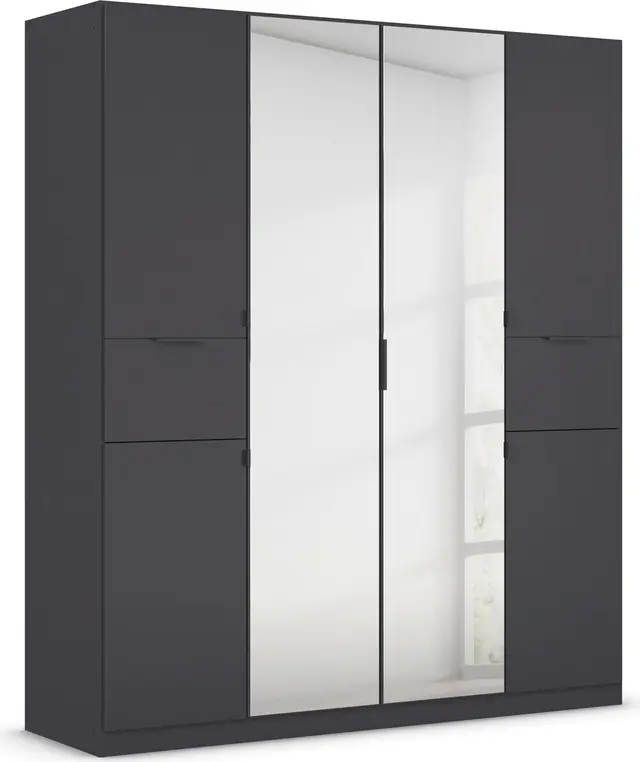Funktionales Highlight: Schubkästen bequem in unterschiedlichen Höhen montierbar. Optisches Highlight: Griffe in Graumetallic sowie optional absesetzte Schubkästen in Eiche Artisan. Viel Stauraum durch praktische Schubkästen. Die Fachböden und Kleiderstangen können variabel in den Schrankelementen eingesetzt und in der Höhe verstellt werden. Made in Germany! Ausgezeichnet mit dem blauen Umweltengel und dem Goldenen M für geprüfte Möbel