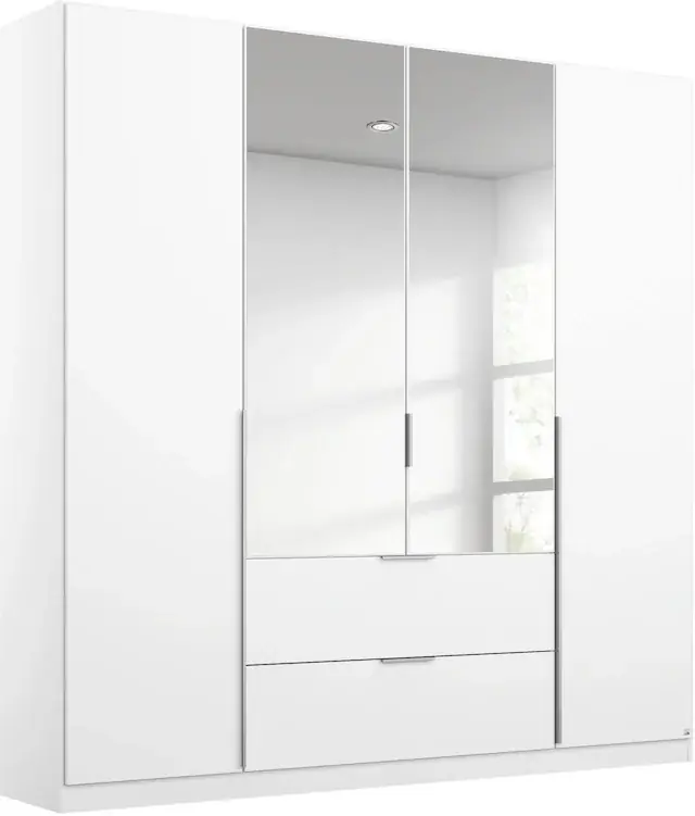 Memphis zeigt eindrucksvoll, dass Wohnkomfort nicht viel Platz braucht. Die filigranen modernen Möbel der Serie bieten eine Vielfalt an cleveren und schönen Stauraumlösungen – vor allem für kleine Räume. Der Drehtürenschrank mit praktischen in das Frontdesign integrierten Schubkästen stellt ordentlich Platz für Kleidung und Co. zur Verfügung. Dank großflächigen Spiegelauflagen auf den Drehtüren wird zusätzliche Weite im Raum erzeugt.