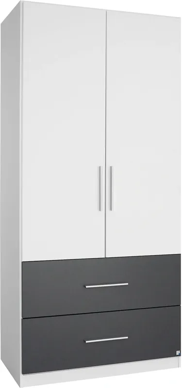 Mit je 2 breiten Schubkästen. Mit Spiegeltüren. In 4 aktuellen Farben. In den Breiten 91 cm, 136 cm und 181 cm. Tiefe/Höhe: 54/197 cm