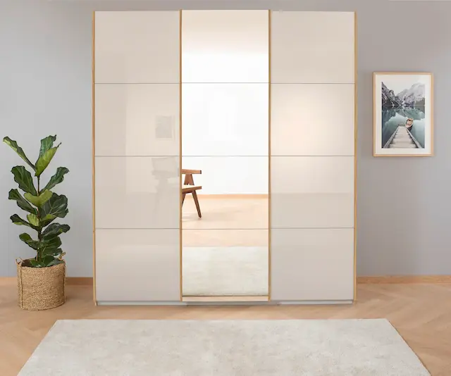2 Einlegeböden und zwei einzelne Schubkästen in der Höhe variabel positionierbar. In verschiedenen Breiten, Materialien und Höhen erhältlich. Fachböden und Kleiderstangen können individuell eingesetzt werden und in der Höhe verstellt werden. Rauch Easy-Slide-Funktion für ein sanftes, leises Öffnen der Schwebetüren. 100% Made in Germany, ausgezeichnet mit dem Blauen Engel und dem Goldenen M