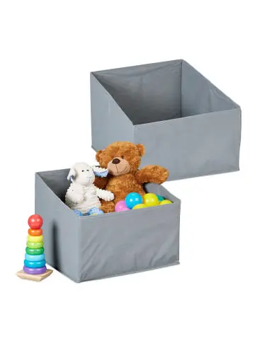 Schaffe mit diesen Faltboxen mehr Ordnung in Deinem Zuhause. Utensilien, die offen herumliegend für Unordnung sorgen, finden in den Stoffkisten einen Platz. Du kannst Spielzeug, Kleidung und andere Kleinigkeiten ordentlich in den Regalkörben aufbewahren. Dank ihrer Größe passen die Boxen in zahlreiche Fächer diverser Regalsysteme. Dabei sorgt die Trapezöffnung für ein einfaches Einlegen bzw. Entnehmen des Inhalts. Bei Nichtgebrauch können die stabilen Verstauboxen zusammengefaltet werden.Aufbewahrungsbox 2er Set im Detail – Maße H x B x T: ca. 22–30 x 37 x 34 cm – Innenmaße H x B x T: ca. 21–29 x 36 x 33 cm – Volumen: ca. 30 L – Gewicht: je ca. 500 g – Material: Baumwolle, Polyester – Farbe: Grau Regalboxen für Spielsachen und mehr – Große Ordnungsboxen für Wohn-, Schlaf- und Kinderzimmer – Zum Verstauen von Kleidung, Spielzeug u. a. Kleinigkeiten – Trapezöffnung zum einfachen Einlegen bzw. Entnehmen des Inhalts – Passend für viele Regalablagen und Kommodenfächer – Stoffboxen bei Nichtgebrauch einfach zusammenfalten – Schlichte Boxen passen in jedes Raumkonzept – Im 2er SetLieferumfang – 2x Faltaufbewahrungsbox – Dekoartikel sind nicht im Lieferumfang enthalten