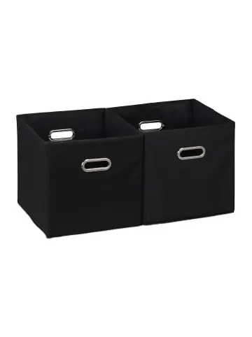 Schaffe mit diesen Faltboxen mehr Ordnung in Deinem Zuhause. Utensilien, die offen herumliegend für Unordnung sorgen, finden in den quadratischen Stoffkisten einen Platz. Du kannst Spielzeug, Kleidung und andere Kleinigkeiten ordentlich in den Regalkörben aufbewahren. Dank ihrer Größe passen die Boxen in zahlreiche Fächer diverser Regalsysteme. Dabei sorgen die praktischen Grifflöcher für eine einfache Handhabung. Bei Nichtgebrauch können die stabilen Verstauboxen zusammengefaltet werden.Aufbewahrungsbox 2er Set im Detail – Maße H x B x T: je ca. 32 x 33 x 33 cm – Traglast: je max. 10 kg – Gewicht: je ca. 0,9 kg – Material: Baumwolle, Pappe, Eisen – Farbe: SchwarzRegalboxen aus Stoff – Große Ordnungsboxen für Wohn-, Schlaf- und Kinderzimmer – Zum Verstauen von Kleidung, Spielzeug u. a. Kleinigkeiten – Perfekte Passform für quadratische Kommodenfächer – Praktische Grifflöcher zum Herausziehen aus Regalen – Stoffboxen bei Nichtgebrauch einfach zusammenfaltenLieferumfang – 2x Faltaufbewahrungsbox – Dekoartikel sind nicht im Lieferumfang enthalten