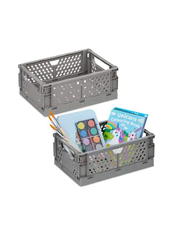 Diese kleinen Klappkisten im praktischen 2er Set bringen Ordnung in Deinen Wohnbereich. Utensilien, wie herumliegende Stifte auf dem Schreibtisch oder auch Schlüssel im Eingang, finden im Faltkorb ihren Platz. Auch für die Organisation von Regalen in Küche, Bad oder Kinderzimmer eignet sich die Faltbox ideal – Einfach aufeinander stapeln, um den verfügbaren Raum optimal auszunutzen. Wird der Klappkorb nicht mehr benötigt, ist er mit wenigen Handgriffen flach und platzsparend zusammengefaltet.Klappbox 2er Set im Detail – Maße H x B x T: ca. 10 x 25 x 16,5 cm – Innenmaße H x B x T: ca. 10 x 23 x 14,5 cm – Maße zusammengeklappt H x B x T: ca. 2,5 x 25 x 16,5 cm – Volumen: ca. 3,33 L – Gewicht je Kiste: ca. 140 g – Material: Kunststoff – In verschiedenen FarbenPraktische Aufbewahrungskörbe aus Plastik – Ordnungshelfer fürs Büro, Schlaf-, Bade- und Kinderzimmer – Perfekt für Kleinteile, Kosmetik, Spielzeug, Bürozubehör etc. – Schnell und mit wenigen Handgriffen auf- & zusammengefaltet – Boxen lassen sich platzsparend übereinander stapeln – Durch kleine Größe passen die schlichten Boxen ideal in RegaleLieferumfang – 2x Klappbox – Dekoartikel nicht im Lieferumfang enthalten