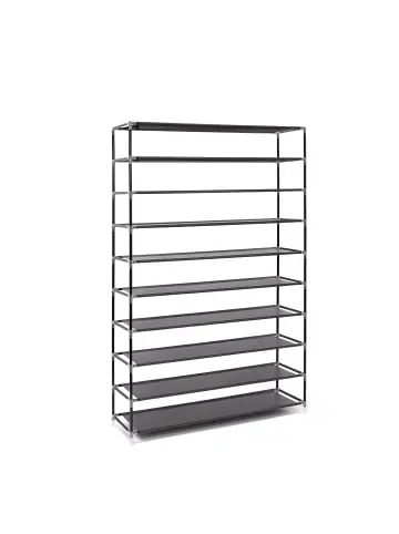 Bringen Sie Ihre komplette Fußbekleidung in diesem großen Schuhschrank der VALENTIN Serie unter. Seine 9 Ablagen bieten Platz für bis zu 45 Paar Schuhe, die dank des Reißverschlusses vor Staub geschützt sind. Damit eignet sich das Schuhregal mit Stoffbezug auch ideal für langfristige Lagerungen im Keller oder auf dem Dachboden.Doch auch im Flur oder Treppenhaus macht der Schuhständer eine gute Figur. Da das Vlies in verschiedenen Farben erhältlich ist, können Sie sich die passende Schuhablage für Ihre Einrichtung einfach aussuchen.Details des Schuhschranks VALENTIN hoch für 45 Paar Schuhe – Gesamt H x B x T: ca. 161 x 88 x 30 cm – Gewicht: ca. 3 kg – Material: Gestell aus Stahlrohr und Vlies-Gewebe – Farbe: schwarz – Im 2er SetGroßes Schuhregal mit Stoffbezug – 9 Ablagen (ohne Überzug 10) – Steht straff und stabil – Staubsicher dank Reißverschluss – Klettvorrichtung zum Halten der Tür – Für Diele, Hausflur, Dachboden und KellerLieferumfang – 2x Schuhregal in Einzelteilen – Anleitung – Dekorationsartikel sind im Lieferumfang nicht enthalten