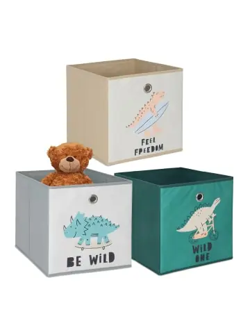 relaxdays 3 x Kinder Aufbewahrungsboxen „Dino“ in Bunt – (B)30 x (H)30 x (T)30 cm günstig kaufen | limango Neue Ware