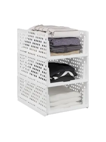 Wenn Du für mehr Ordnung in Deinem Kleiderschrank sorgen möchtest, dann sind diese praktischen Aufbewahrungsboxen im 3er Set genau das richtige für Dich. Die stapelbaren Schrank-Organizer lassen sich wie Schubladen herausziehen, sodass Pullover, T-Shirts, Hosen und Co. im Nu ordentlich verstaut und leicht zugänglich sind. Auch im Badezimmer finden die Organizer Verwendung und eignen sich ideal für die Aufbewahrung von Handtüchern. Dank des Stecksystems lassen sie sich schnell auf- und abbauen.Schrankkörbe im Detail – Größe S Maße H x B x T: 13 x 33,5 x 43,5 cm / ca. 550 g – Größe M Maße H x B x T: 18 x 33,5 x 43,5 cm / ca. 650 g – Größe L Maße H x B x T: 24,5 x 33,5 x 43,5 cm / ca. 750 g – Traglast: je ca. 3 kg – Traglast für Ebene 2 und 3: je ca. 2 kg – Material: Kunststoff – In verschiedenen FarbenSchrank-Organizer aus Kunststoff – Größe S gefaltet H x B x T: ca. 4,5 x 33,5 x 43,5 cm – Größe M gefaltet H x B x T: ca. 4,5 x 33,5 x 43,5 cm – Größe L gefaltet H x B x T: ca. 6 x 33,5 x 43,5 cmVielseitige Kleideraufbewahrung zum Stapeln – Platzsparende und effiziente Aufbewahrungslösung für Schränke – Ordnungssystem individuell aufeinanderstapeln – Im 3er Set – Einsätze lassen sich wie Schubladen aus dem Schrank ziehen – Sorgen für Ordnung und Übersicht – Für Kleidung, Handtücher uvm. – Optimale Größe für verschiedene Schranktypen – Auch im Bad – Einfacher und schneller Auf- bzw. Abbau dank StecksystemLieferumfang – 3x Kleiderschrank-Organizer in Farbe und Größe nach Wahl – Dekoartikel sind nicht im Lieferumfang enthalten