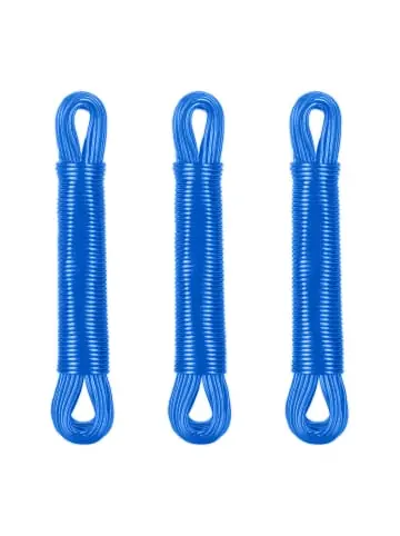 Diese Wäscheleine im praktischen 3er Set lässt Dich nasse Kleidungsstücke im Handumdrehen zum Trocknen aufhängen. Spanne die UV-beständige Wäscheschnur je nach Bedarf im Waschraum Deines Kellers, im Garten oder auf dem Balkon auf. Der Polyesterkern verleiht dem Wäscheseil dabei besondere Reißfestigkeit und Stabilität. Dank der pflegeleichten PVC-Ummantelung lässt sich die Wäscheleine leicht reinigen.Wäscheleine 3er Set im Detail – Gesamtlänge: je ca. 20 m – Dicke je Seil: ca. 2,5 mm – Max. Traglast: je 30 kg – Gewicht: je ca. 120 g – Material: PVC, Polyester – Verschiedene Farben zur AuswahlExtra starke Wäscheschnur mit Polyesterkern – Praktisches 3er Set für Deine Kleidung – Zum Aufhängen im Innen- und Außenbereich – Für Keller, Garten, Balkon oder Camping geeignet – Besonders reißfest dank robustem Polyesterkern – Pflegeleichte PVC-Ummantelung einfach abwischenLieferumfang – 3x Wäscheseil in Farbe nach Wahl – Dekoartikel sind nicht im Lieferumfang enthalten