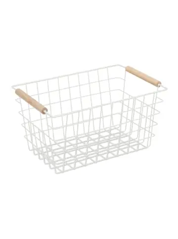 Der Metallkorb ist ein echter Aufbewahrungs-Allrounder und bietet stilvoll Stauraum für kleinere Gegenstände. Das Körbchen ist dank der 2 Holzgriffe einfach tragbar. Verstauen Sie Kosmetikartikel oder Kleidungsstücke wie Socken, Unterwäsche, Tücher und Accessoires platzsparend. Nutzen Sie den Korb im Badezimmer, im Kleiderschrank oder als Regalkorb. Das offene und zeitlos schlichte Gitter-Design verschafft Ihnen nicht nur schnell Überblick über den Inhalt, sondern ist auch ein echter Hingucker.Drahtkorb im Detail – Größe H x B x T: ca. 16 x 31 x 21 cm – Innenraum H x B x T: ca. 15 x 28 x 20 cm – Boden B x T: ca. 25 x 15 cm – Traglast: ca. 10 kg – Gewicht: ca. 400 g – Material: Metall, Buchenholz – Farbe: weiß – Im 3er SetStylischer Korb Organizer zur Aufbewahrung – Praktisches Aufbewahrungskörbchen für Zuhause – Korb im zeitlosen Gitterdesign setzt Akzente – Stauraum für Accessoires, Kosmetik, Badartikel und Co. – Korb mit hohem Rand birgt viel Platz für kleine Dinge – Mehrere Körbe sind leer ineinander stapelbarLieferumfang – 3x Drahtkorb – Dekoartikel sind nicht im Lieferumfang enthalten