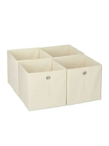 Schaffe mit diesen Faltboxen mehr Ordnung in Deinem Zuhause. Utensilien, die offen herumliegend für Unordnung sorgen, finden in den quadratischen Stoffkisten einen Platz. Du kannst Spielzeug, Kleidung und andere Kleinigkeiten ordentlich in den Regalkörben aufbewahren. Dank ihrer Größe passen die Boxen in zahlreiche Fächer diverser Regalsysteme. Dabei sorgen die praktischen Grifflöcher für eine einfache Handhabung. Bei Nichtgebrauch können die stabilen Verstauboxen zusammengefaltet werden.Aufbewahrungsbox 4er Set im Detail – Maße H x B x T: ca. 30 x 30 x 30 cm – Innenmaße H x B x T: ca. 29,5 x 29,5 x 29,5 cm – Volumen: ca. 26 l – Traglast: max. 5 kg – Gewicht: je ca. 0,6 kg – Material: Polyester, Pappe – In verschiedenen FarbenQuadratische Regalboxen aus Stoff – Große Ordnungsboxen für Wohn-, Schlaf- und Kinderzimmer – Zum Verstauen von Kleidung, Spielzeug u. a. Kleinigkeiten – Perfekte Passform für quadratische Kommodenfächer – Praktische Grifflöcher zum Herausziehen aus Regalen – Stoffboxen bei Nichtgebrauch einfach zusammenfalten – Schlichte Boxen passen in jedes Raumkonzept – Im 4er SetLieferumfang – 4x Faltaufbewahrungsbox – Dekoartikel sind nicht im Lieferumfang enthalten