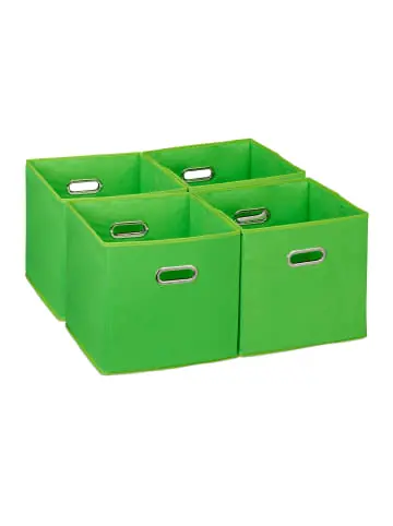 Schaffe mit diesen Faltboxen mehr Ordnung in Deinem Zuhause. Utensilien, die offen herumliegend für Unordnung sorgen, finden in den quadratischen Stoffkisten einen Platz. Du kannst Spielzeug, Kleidung und andere Kleinigkeiten ordentlich in den Regalkörben aufbewahren. Dank ihrer Größe passen die Boxen in zahlreiche Fächer diverser Regalsysteme. Dabei sorgen die praktischen Grifflöcher für eine einfache Handhabung. Bei Nichtgebrauch können die stabilen Verstauboxen zusammengefaltet werden.Aufbewahrungsbox 4er Set im Detail – Maße H x B x T: ca. 30 x 30 x 30 cm – Innenmaße H x B x T: ca. 29,5 x 29,5 x 29,5 cm – Volumen: ca. 26 l – Traglast: max. 5 kg – Gewicht: je ca. 0,6 kg – Material: Polyester, Pappe – In verschiedenen FarbenQuadratische Regalboxen aus Stoff – Große Ordnungsboxen für Wohn-, Schlaf- und Kinderzimmer – Zum Verstauen von Kleidung, Spielzeug u. a. Kleinigkeiten – Perfekte Passform für quadratische Kommodenfächer – Praktische Grifflöcher zum Herausziehen aus Regalen – Stoffboxen bei Nichtgebrauch einfach zusammenfalten – Schlichte Boxen passen in jedes Raumkonzept – Im 4er SetLieferumfang – 4x Faltaufbewahrungsbox – Dekoartikel sind nicht im Lieferumfang enthalten