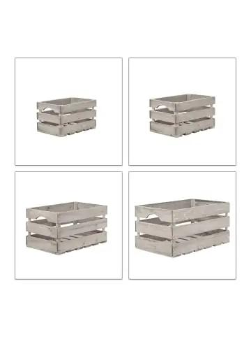 Dekorieren Sie die angesagten Weinkisten ganz individuell und verschönern Sie Ihr Zuhause. Nicht nur Ordnung halten ist mit den Holzstiegen ein Kinderspiel, Sie verleihen Ihrer Wohnung zugleich einen charmanten Touch. Die 4 Kisten aus Tannenholz sind unterschiedlich groß und vielfältig einsetzbar. Im Wohnzimmer präsentieren Sie dekorativ Ihre Weinsammlung oder nehmen die Box zur Aufbewahrung von Büchern. Auch Blumentöpfe sind in der Kiste wunderbar aufgehoben. Zudem lassen sich die Obstkisten mit den Grifflöchern leicht anheben und transportieren.Holzkiste 4er Set im Detail – Maße Kiste (S) H x B x T: ca. 15 x 23 x 16 cm; 0,4 kg – Maße Kiste (M) H x B x T: ca. 18 x 32 x 21 cm; 0,75 kg – Maße Kiste (L) H x B x T: ca. 22 x 41 x 25,5 cm; 0,9 kg – Maße Kiste (XL) H x B x T: ca. 25 x 50 x 31 cm; 1,4 kg – Material: Tannenholz – Farbe: GrauRustikale Allzweckkisten im Used-Look – Boxen individuell nutzen und dekorieren – Ideal für Wohnzimmer, Küche, Schlafzimmer – Bei Nichtgebrauch einfach ineinander stapeln – Leicht zu transportieren durch Grifflöcher – Überzeugende Optik im Vintage Design – Sorgt für Ordnung und Übersichtlichkeit – Extra viel Stauraum durch 4 KistenLieferumfang – 4 x Holzkiste – Dekoartikel sind nicht im Lieferumfang enthalten