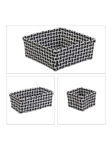 Mit dem 4er Aufbewahrungskorb Set sind Sie perfekt ausgerüstet, um verschiedene Dinge des Alltags übersichtlich aufzubewahren. Verstauen Sie in den geflochtenen Dekokörben in 3 Größen Kosmetik im Bad, Socken und Unterwäsche im Kleiderschrank oder verwenden Sie die Utensilienkörbe als dekorative Aufbewahrungslösung in Wohnzimmer und Flur. Auch als Schubladen Organizer für das Büro machen die Flechtkörbe eine gute Figur. Bei Nichtgebrauch können sie platzsparend ineinander gestapelt werden.Aufbewahrungskorb 4er Set im Detail – Maße großer Korb H x B x T: ca. 10 x 23,5 x 23,5 cm / ca. 130 g – Maße mittlerer Korb H x B x T: ca. 8 x 21,5 x 11,5 cm / ca. 80 g – Maße kleine Körbe H x B x T: ca. 8 x 11 x 11 cm / ca. 50 g – Material: PP, Metall – Verschiedene FarbenFlechtkörbchen zur Aufbewahrung in Bad und Co. – Ideal für Kosmetik und andere Badutensilien – Praktisch auch in Wohn-, Schlaf- oder Kinderzimmer – 3 verschiedene Größen passend für jeden Bedarf – Flechtoptik setzt dekorative Akzente in jedem Raum – Körbe bei Nichtgebrauch ineinander stapelbarLieferumfang – 1x Korb groß – 1x Korb mittel – 2x Korb klein – Dekorationsartikel sind im Lieferumfang nicht enthalten