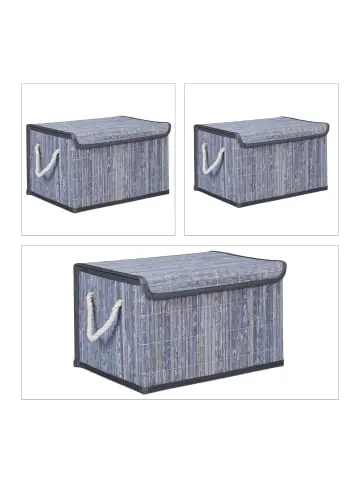 Wenn Badablage oder Wannenrand überfüllt sind, schafft der Aufbewahrungskorb fürs Badezimmer Ordnung. Der natürliche Bambuskorb ist nicht nur für das Bad geeignet. Im ganzen Haus halten die Aufbewahrungsboxen die Dinge des Alltags an ihrem Platz. Die praktischen Dekokörbe sind vielseitig verwendbar für Spielzeug, Deko, Nähutensilien uvm. Kinder-, Schlaf- oder Wohnzimmer. Dank des Deckels mit Klettverschluss wird der Inhalt diskret und staubfrei aufbewahrt.Aufbewahrungskorb 5er Set im Detail – Maße Korb (XS) H x B x T: ca. 15 x 22,5 x 13 cm – Maße Korb (S) H x B x T: ca. 17 x 26,5 x 16 cm – Maße Korb (M) H x B x T: ca. 19 x 30,5 x 19,5 cm – Maße Korb (L) H x B x T: ca. 21 x 34,5 x 24 cm – Maße Korb (XL) H x B x T: ca. 23 x 37,5 x 27,5 cmWeitere Eigenschaften der Körbe – Volumen: ca. 4, 7, 11, 16 und 23 Liter – Material: Bambus, MDF-Platte, Polyester – Gesamtgewicht: ca. 2,5 kg – In verschiedenen Farben erhältlichVielseitige Aufbewahrungsboxen – Mit Klettverschluss-Deckel für staubfreie Aufbewahrung – Natürlicher Bambus und dezentes Stofffutter – Für Bad, Wohn-, Schlaf- und Kinderzimmer uvm. – Mit den Boxen dekorativ für Ordnung sorgen – Für Kosmetik, Spielzeug, Deko und andere KleinteileLieferumfang – 5x Aufbewahrungskorb – Dekoartikel sind nicht im Lieferumfang enthalten