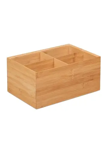Mit dieser Allzweckkiste holst Du Dir ein wahres Universaltalent zum Ordnen, Aufbewahren und Transportieren verschiedenster Dinge nach Hause. Der zeitlose Bambuskasten mit 4 Fächern eignet sich wunderbar zum griffbereiten Verstauen von Utensilien im Badezimmer, als Aufbewahrung in der Küche, als Ordnungsbox in Wohnzimmer oder zum Verstauen des Spielzeugs im Kinderzimmer. Die stabile Stapelbox überzeugt als Ordnungshelfer und setzt dank natürlicher Maserung warme Akzente im Raum.Aufbewahrungskiste im Detail – Gesamtmaße H x B x T: ca. 14 x 30 x 20 cm – Innenmaße je Fach H x B x T: ca. 12,5 x 13,5 x 9 cm – Traglast: ca. 5 kg – Gewicht: ca. 1 kg – Material: Bambus – Farbe: NaturStabile Aufbewahrungsbox mit 4 Fächern – Zum Verstauen verschiedenster Dinge des täglichen Bedarfs – Platzsparender Stauraum durch stapelbare Konzeption – Für Küche, Bad, Wohnzimmer, Kinderzimmer, Büro etc. – Dank offenem Design schneller Überblick über verstaute Utensilien – Robuster Bambus mit natürlicher, dekorativer MaserungLieferumfang – 1x Bambusbox – Dekoartikel sind im Lieferumfang nicht enthalten