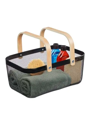 Der Metallkorb ist ein echter Aufbewahrungs-Allrounder und bietet Dir Stauraum für diverse Haushaltsgegenstände. Dabei macht das geräumige, eckige Körbchen in jedem Raum eine gute Figur. Nutze den Utensilienkorb für Kosmetik oder Gästehandtücher im Bad oder verstaue Kleidungsstücke wie Socken, Unterwäsche und Accessoires platzsparend. In der Küche bringt der Allzweckkorb Ordnung in Deine verpackten Vorräte. Der Mix aus Metall und Holz verleiht dem Gitterkorb einen modernen Look.Drahtkorb mit Henkel im Detail- Maße H x B x T: ca. 17,5 x 43 x 27 cm – Höhe mit Henkel: ca. 30 cm- Innenmaße H x B x T: ca. 17 x 39 x 24 cm – Max. Traglast: 5 kg – Gewicht: ca. 800 g- Material: Stahl, Holz – Verschiedene FarbenModerner Aufbewahrungskorb aus Metall- Praktisches Aufbewahrungskörbchen für zu Hause – Vielseitig nutzbar in Bad, Küche, Wohnzimmer etc. – Für Kosmetik, verpackte Lebensmittel, als Dekokorb und mehr – Offenes Design aus Metalldraht bietet guten Überblick über Inhalt – Henkel aus Holz setzt optische Kontraste zum Metallkörbchen – Auch zur Aufbewahrung oder zum Transport kleiner Einkäufe Lieferumfang- 1x Metall-Aufbewahrungskorb in Farbe nach Wahl – Dekoartikel sind im Lieferumfang nicht enthalten