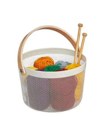 Der Metallkorb ist ein echter Aufbewahrungs-Allrounder und bietet Dir Stauraum für diverse kleine Haushaltsgegenstände. Mit seiner kompakten Größe passt das runde Körbchen in jeden Raum und jedes Regal. Nutze den Utensilienkorb für Kosmetik oder Gästehandtücher im Bad oder verstaue Kleidungsstücke wie Socken, Unterwäsche und Accessoires platzsparend. In der Küche bringt der Allzweckkorb Ordnung in Deine verpackten Vorräte. Der Mix aus Metall und Holz verleiht dem Gitterkorb einen modernen Look.Drahtkorb mit Henkel im Detail- Maße H x B x T (Griff runtergeklappt): ca. 17,5 x 27,5 x 26,5 cm- Höhe mit Henkel: ca. 30 cm- Innenmaße H x D: ca. 17 x 25 cm- Max. Traglast: 5 kg – Gewicht: ca. 400 g- Material: Stahl, Holz – Verschiedene FarbenModerner Aufbewahrungskorb aus Metall- Praktisches Aufbewahrungskörbchen für zu Hause – Vielseitig nutzbar in Bad, Küche, Wohnzimmer etc. – Für Kosmetik, verpackte Lebensmittel, als Dekokorb und mehr – Offenes Design aus Metalldraht bietet guten Überblick über Inhalt – Henkel aus Holz setzt optische Kontraste zum Metallkörbchen – Auch zur Aufbewahrung oder zum Transport kleiner Einkäufe Lieferumfang- 1x Metall-Aufbewahrungskorb in Farbe nach Wahl – Dekoartikel sind im Lieferumfang nicht enthalten