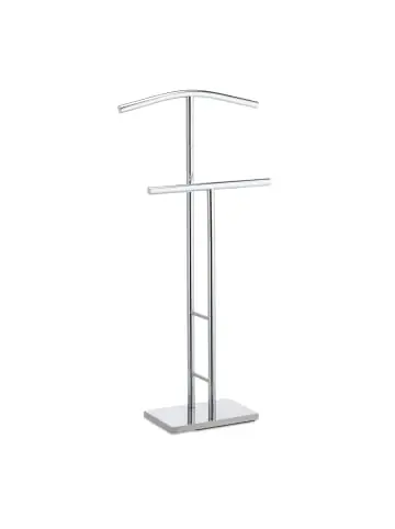 Falten und Knitter können selbst das schickste Outfit entstellen. Damit Ihnen das nicht passiert, hängen Sie Ihre Kleidungsstücke einfach mithilfe des Herrendieners Chrom auf. Der Kleiderbügel sorgt dafür, dass die Schultern von Hemden und Jacketts ihre Form behalten. Hosen und Röcke finden auf der etwas tiefer positionierten Stange Platz. Für die nötige Stabilität des freistehenden Kleiderbutlers sorgt der schwere Standfuß. Der stumme Diener passt mit seinem zeitlos schlichten Design perfekt zu den verschiedensten Einrichtungsstilen.Herrendiener Chrom im Detail – Maße komplett H x B x T: ca. 106 x 49 x 20 cm – Maße Fuß H x B x T: ca. 3 x 31,5 x 20 cm – Materialien: verchromter Stahl, Kunststoff – Gewicht montiert: ca. 3,6 kgStummer Diener für die Kleideraufbewahrung – Zum knitterfreien Aufhängen – Für Anzüge, Jacketts, Hemden uvm. – Glänzende Chrom-Oberfläche – Schnelle Montage ohne Bohren – Schwere Basis für stabilen StandLieferumfang – 1x Herrendiener in Einzelteilen – Mit Montagematerial – Mit Anleitung – Dekoartikel sind im Lieferumfang nicht enthalten