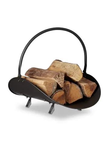Dieser Kaminholzkorb ist ideal zur Aufbewahrung von Brennholz für Ihren Kamin oder Ofen. Der Brennholzkorb ist mit einem praktischen runden Henkel ausgestattet, wodurch er sich zudem einfach und bequem tragen lässt. Der Kaminkorb besteht komplett aus Stahl und ist robust und stabil.Der modern gestaltete Feuerholzkorb besticht durch sein schlichtes elegantes Design in Kombination mit der satten schwarzen Farbe. Der Allzweckkorb kann auch als Zeitungsständer und zur Aufbewahrung von Büchern und anderen Gegenständen genutzt werden.Kaminholzkorb schwarz im Detail • Maße H x B x T: ca. 40 x 38 x 48 cm • Gewicht: ca. 1 kg • Material: Pulverbeschichteter Stahl • Farbe: Schwarz • Mit rundem Henkel ausgestattetGroßer Brennholzkorb für den Kamin • Zur Aufbewahrung von Kaminholz oder Briketts • Dekorativ durch modernes Design • Universal einsetzbar, z.B. als Zeitungsständer • Stabil und robust • Einfacher und schneller AufbauLieferumfang • 1x Kaminholzkorb in Einzelteilen • Dekorationsartikel sind nicht im Lieferumfang enthalten