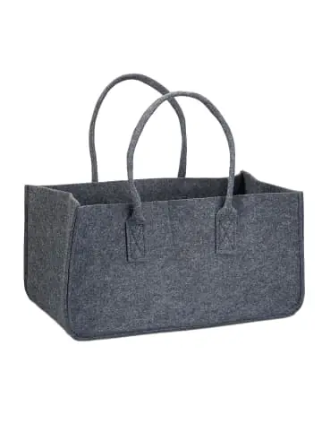 Mit dieser robusten Filztasche ist der Transport und die Lagerung von Kaminholz, Zeitschriften und vielem anderen Füllgut kinderleicht. Die rustikale Filzoptik der Kaminholztasche ist zudem dekorativ. Der flexible Filzkorb ist als Aufbewahrungstasche ein praktischer Begleiter, ob in Bad, Diele oder Wohnzimmer. Auch als Einkaufstasche macht der Zeitungshalter dank der Haltegriffe eine gute Figur.Die praktische Tasche aus Filz ist universell einsetzbar und kommt in Ihrer Wunschfarbe zu Ihnen nach Hause.Kaminholztasche im Detail – Maße H x B x T: ca. 25 x 25 x 50 cm – Füllvolumen: ca. 27 L – Gewicht: ca. 0,5 kg – Material: FilzFilzkorb für Brennholz – Lagerung für Ofenholz, Zeitschriften uvm. – Dekorative Filz-Optik passt zu vielen Einrichtungen – Belastbare Tragetasche für Unterwegs – Unbedenklicher Aufbewahrungskorb für KinderKaminholztasche mit Henkeln – Stabiler Stand, selbst ohne Inhalt – Schont Parkett- und Laminatböden – Sehr flexible Filzwände – Zum Verstauen faltenLieferumfang – 1x Kaminholztasche (in Farbe nach Wahl) – Dekoartikel im Lieferumfang nicht enthalten