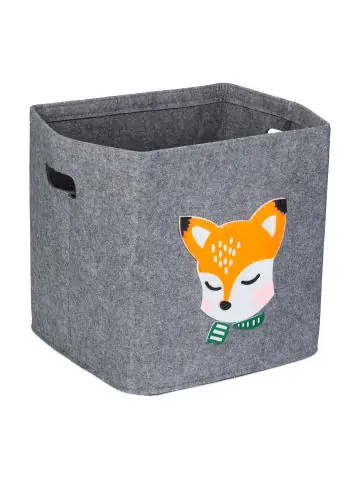 Mit dieser niedlichen Aufbewahrungsbox fällt Deinen Kleinen das Aufräumen gleich viel leichter und Spielzeug wie Bausteine, Plüschtiere und mehr ist ordentlich aufbewahrt. Dank des tollen Motivs eignet sich die geräumige Spielzeugkiste wunderbar für das Kinder- oder Babyzimmer. Sollte die Ordnungsbox einmal nicht benötigt werden, lässt sie sich im Handumdrehen flach zusammenfalten und platzsparend verstauen. Dank den beiden Griff-Löchern lässt sich der Filzkorb einfach tragen.Kinder-Aufbewahrungsbox im Detail- Maße H x B x T: ca. 33 x 33 x 33 cm – Maße gefaltet: ca. 33 x 31 x 6,5 cm – Volumen: ca. 30 Liter – Maximale Traglast: 15 kg- Gewicht: ca. 0,4 kg – Material: Filz – Verschiedene Designs zur AuswahlKinderzimmerbox im Tierdesign- Ideal zur Spielzeugaufbewahrung im Kinderzimmer – Niedliches, kindgerechtes Design für Jungen und Mädchen – Flexibler Stoff-Aufbewahrungskorb aus grauem Filz – Mit zwei Griff-Löchern zum bequemen Tragen – Perfekt für Spielzeug, Kuscheltiere, Kinderbücher uvm. – Die Box ist bei Nichtgebrauch platzsparend faltbarLieferumfang – 1x Aufbewahrungskorb in Design nach Wahl- Dekoartikel sind nicht im Lieferumfang enthalten