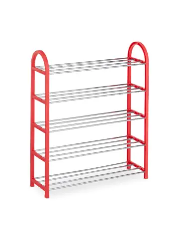 Das platzsparende Kinderschuhregal bringt Ordnung in das Schuhchaos im Flur. Hausschuhe, Halbschuhe, Stiefel und Sandaletten Deiner Kleinsten passen problemlos in den schmalen Schuhständer mit 5 Ebenen. Insgesamt 15 Paar Kinderschuhe bis Größe 30 finden so ihren festen Platz und erleichtern dank kindgerechter Höhe das tägliche Aus- und Einräumen. Die strahlende Farbe des Kunststoffrahmens und die leichte, offene Bauweise sprechen Kleinkinder sofort an und motivieren in der Autonomiephase.Kinderschuhregal im Detail – Maße H x B x T: ca. 70 x 57,5 x 18,5 cm – Maße je Ebene H x B: ca. 13,5 x 54 cm – Max. Traglast je Ebene: ca. 2,5 kg – Eigengewicht: ca. 0,8 kg – Materialien: Kunststoff, Eisen – In verschiedenen Farben erhältlichSchuhregal für Kinderschuhe – Offener Schuhschrank mit 5 Ebenen – Platz für Haus- und Straßenschuhe bis Größe 30 – Kinderschuhablage ermöglicht selbstständiges Ein- und Ausräumen – Schuhständer mit Kunststoffrahmen in fröhlichen Farben – Ablage aus Eisenstreben für schnelles Abtropfen und Trocknen – Leichte und platzsparende Bauweise mit abgerundeten GriffenLieferumfang – 1x Schuhregal in Einzelteilen – Inkl. Aufbauanleitung – Dekoartikel sind nicht im Lieferumfang enthalten