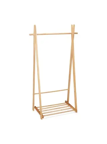 Mit diesem freistehenden Kleiderständer hast Du in Flur, Schlaf- oder Badezimmer im Handumdrehen Deine Kleidung abgelegt. Hänge an der oberen Kleiderstange Hemden und Jacken auf. Dank der seitlichen Einkerbungen finden auch Taschen und Beutel ihren Platz. Auf der unteren Ablage des Garderobenständers kannst Du Schuhe und Stiefel platzieren. Bringe bei Bedarf die Kleiderablage in eine 2. Position, und hänge die Ablage schräg ein. Der Herrendiener aus Holz lässt sich platzsparend zusammenklappen.Kleiderständer im Detail – Größe H x B x T: ca. 153 x 87,5 x 45 cm – Größe mit schräger Ablage H x B x T: ca. 154 x 87,5 x 33 cm – Größe geklappt H x B x T: ca. 154,5 x 87,5 x 9 cm – Traglast: 5 kg – Gewicht: ca. 3,6 kg – Material: Kiefernholz – Farbe: NaturKleiderablage aus Holz – Obere Kleiderstange B x D: ca. 87,5 x 2,5 cm – Untere Stange B x D: ca. 67 x 2 cm – Ablage unten B x T: ca. 63 x 45 cm – Abstand Kleiderstange zu unterer Stange: ca. 104,5 cm – Abstand Kleiderstange zu unterer Ablage: ca. 26 cmGarderobenständer mit Schuhablage – Frei im Flur, Schlafzimmer oder Bad platzieren – Offene Konstruktion zum schnellen Ab- und Anlegen – Kleiderstange für Jacken, Blusen, Hemden etc. – Einkerbungen außen ideal für Beutel und Taschen – Untere Ablage für Schuhe, Stiefel und mehr – 2 Einhängepositionen der Ablage möglich – Bei Nichtgebrauch platzsparend zusammenklappenLieferumfang – 1x Herrendiener in Einzelteilen – Mit Anleitung und Montagematerial – Dekoartikel sind nicht im Lieferumfang enthalten