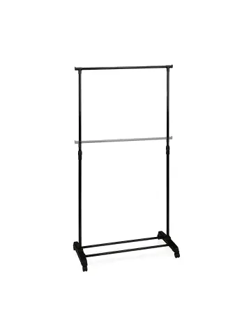 Wenn beim Umzug noch der passende Kleiderschrank fehlt oder das passende Outfit bei der Modenschau schnell parat sein muss, hilft Ihnen diese flexible Rollgarderobe, Übersicht zu schaffen. Auf der Kleiderstange können Sie Jacken, Hemden oder auch Blusen aufhängen, während die Ablage zur Aufbewahrung von Schuhen, Taschen und mehr dient. Je nach Bedarf kann die Rollgarderobe stufenlos in der Höhe verstellt werden. Dank seiner 4 Rollen ist der Kleiderständer problemlos am Ort Ihrer Wahl platziert.Kleiderständer im Detail – Gesamtmaße hoch H x B x T: ca. 180,5 x 91 x 42 cm – Gesamtmaße niedrig H x B x T: ca. 102,5 x 91 x 42 cm – Traglast: ca. 10 kg – Gewicht: ca. 1,4 kg – Material: Eisen, Kunststoff – Farbe: SchwarzKleiderregal mit viel Stauraum – Kleiderstange B x D: ca. 78,5 x 2,1 cm – Maße Ablage B x T: ca. 77 x 19 cm – Stangen unten D: ca. 1,9 cm – Abstand Stangen: ca. 15 cmRollbarer Kleiderständer aus Metall – Moderner Garderobenständer mit Kleiderstange und Ablage – Hemden, Blusen, Jacken und mehr übersichtlich aufhängen – Ablage für passende Taschen, Schuhe uvm. – Für perfektes Outfit – Mobil dank 4 Rollen – Bei Bedarf mit Bremsen feststellen – Flexible Kleiderablage für Schlafzimmer, Flur, Garderobe uvm.Lieferumfang – 1x Rollkleiderständer in Einzelteilen – Mit Anleitung – Dekoartikel sind nicht im Lieferumfang enthalten