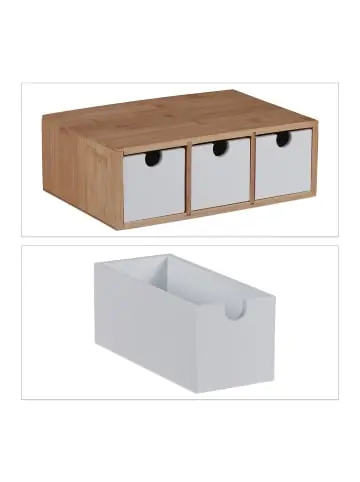 Die praktische Schubladenbox ist ein Allrounder für den Schreibtisch, im Büro, Bad oder in der Küche. Kleinere Utensilien wie Kugelschreiber, Notizzettel, USB-Kabel, Schmuck, Kosmetik oder selbst Kaffeekapseln und Teebeutel finden ihren Platz in den 3 Schubladen des Organizers. Die Kombination aus natürlichem Bambus und elegantem Weiß passt zu jedem Einrichtungsstil. Außerdem kannst Du die Mini Kommode auch als dekorative Ablage nutzen und zum Beispiel kleine Blumentöpfe darauf platzieren.Schubladenbox Bam im Detail- Maße H x B x T: ca. 9 x 26 x 18 cm- Innenmaße Schubladen H x B x T: je ca. 6 x 6 x 16 cm – Gewicht: ca. 1 kg- Material: Bambus, MDF – Farbe: Natur, WeißMini Kommode mit Schubladen- Organizer für Büro, Werkstatt, Bad und Küche – Für Stifte, Notizzettel, Kosmetik, Teebeutel etc. – Natürlicher Bambus ist ein dekorativer Blickfang – Leicht herausziehbare Schubladen aus MDF- Auch für Bastelutensilien und kleineres WerkzeugLieferumfang – 1x Schubladenbox – Dekorationsartikel sind nicht im Lieferumfang enthalten