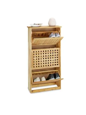 Schaffen Sie Platz in Ihrem Flur und verstauen Sie Ihr Schuhwerk in diesem schicken wie praktischen Kipp-Schuhregal aus Walnuss. Die einzelnen Kippfächer sind schräg angebracht und lagern Ihre Schuhe auf ansprechende Art und Weise. Der natürliche Ton des Holzes verströmt schlichte Schönheit und passt sich perfekt in die Diele und das Treppenhaus ein. Jedes Fach bietet bis zu maximal 2 Paar Schuhen Platz. Details des Schuhkippers Walnuss• Größe gesamt H x B x T: ca. 104,3 x 55 x 20,2 cm• Schubfach Innenmaße H x B x T: ca. 30 x 44,5 x 15,5 cm• Gewicht: ca. 10,5 Kg• Komplett aus Walnuss• Schubladenboden und Rückwand aus MDF Lieferumfang• 1x Schuhregal• Kippfächer• Anleitung • Dekorationsartikel sind im Lieferumfang nicht enthalten
