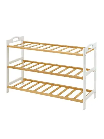 Mit dem Schuhorganizer bringst Du Ordnung und Übersicht in Deine Schuhsammlung und sorgst für einen aufgeräumten Eingangsbereich. Auf 3 offenen, leicht zugänglichen Ebenen können insgesamt 9 Paar Schuhe verstaut werden. So hast Du mit dem Schuhständer Dein liebstes Schuhwerk passend zum Outfit oder Wetter jederzeit griffbereit. Dank des schmalen Designs passt das platzsparende Bambus-Schuhregal auch in kleine Flure, Dielen oder enge Treppenhäuser. Schuhregal im Detail – Maße H x B x T: ca. 48 x 70 x 25 cm – Material: Bambus – In verschiedenen Farben erhältlichSchmaler Schuhständer aus Bambus – Ordentliche und übersichtliche Schuhaufbewahrung – 3 Ebenen bieten Platz für insgesamt 9 Paar Schuhe – Platzsparende Schuhablage durch schmales Design – Offenes Design für guten Überblick und schnellen Zugriff – Gefertigt aus robustem und natürlichem Bambus – Ideales Schuhgestell für Flur, Diele und AnkleidezimmerLieferumfang – 1x Schuhregal in Einzelteilen – Mit Anleitung – Mit Montagematerial – Dekoartikel sind nicht im Lieferumfang enthalten