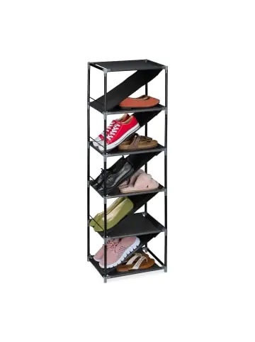 Mit diesem platzsparenden Schuhregal gehören herumliegende Schuhe der Vergangenheit an. Die schmale Schuhablage ist ideal für den Flur, das Schlafzimmer oder in kleinen Nischen. In den unteren 5 Ebenen finden je 2 Paar Schuhe ihren Platz dank schräger und gerade Ablage. So hast Du mit dem Schuhständer Deine liebsten Halbschuhe passend zum Outfit jederzeit griffbereit und optisch ansprechend präsentiert. Das praktische Schuhgestell mit Stecksystem ist schnell aufgebaut.Schuhregal im Detail – Gesamtmaße H x B x T: ca. 121 x 38 x 30 cm – Gerade Stoffablage B x T: ca. 29,5 x 31 cm – Schräge Stoffablage B x T: ca. 22 x 41 cm – Traglast pro Stoffablage: je ca. 3 kg – Gewicht: ca. 1,3 kg – In verschiedenen Farben erhältlichSchmaler Schuhständer für den Flur – Zur Aufbewahrung von 2 Paar Halbschuhe pro Ebene – Schuhregal mit schrägen Ablagen zur Präsentation – Platzsparende Schuhablage durch schmales Design – Offenes Schuhgestell für schnellen Zugriff – Unkompliziertes Stecksystem aus Metallgestell mit StoffablagenLieferumfang – 1x Schuhorganizer in Einzelteilen – Mit Anleitung – Dekoartikel sind nicht im Lieferumfang enthalten