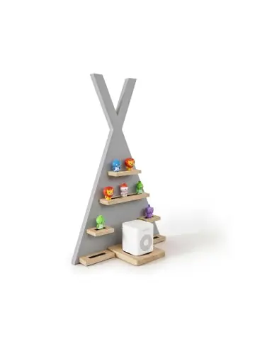 Das praktische Tonies-Regal bietet Platz für bis zu 34 Toniesfiguren, die dank der Magnetstreifen sicher an Ort und Stelle bleiben. Das Kinderregal verfügt zudem über eine Aussparung für die Toniebox und die Ladestation, sodass das ganze Tonies-Sortiment übersichtlich an einem Ort verstaut ist. Das kindgerechte Design in Zeltform lädt Kinder dazu ein, die Hörfiguren selbstständig in das Tonieregal einzuräumen und sich ihre Lieblingsgeschichten auszuwählen.Toniebox Regal im Detail – Maße H x B x T: ca. 69 x 49 x 9 cm – Gewicht: ca. 2,3 kg – Material: MDF, Kiefernholz – Verschiedene Farben erhältlichToniefigurenregal in Zeltform – Zur Aufbewahrung von bis zu 34 Toniesfiguren – Magnetstreifen für sicheren Halt der Figuren – Mit Aussparung für Toniebox und Ladestation – Kindgerechtes Design in dekorativer Zeltform – Zur platzsparenden Befestigung an der Wand – Inklusive Material zur einfachen WandmontageLieferumfang – 1x Kinderzimmerregal in Einzelteilen – Mit Montagematerial – Dekoartikel sind nicht im Lieferumfang enthalten