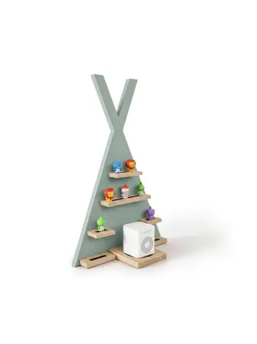 Das praktische Tonies-Regal bietet Platz für bis zu 34 Toniesfiguren, die dank der Magnetstreifen sicher an Ort und Stelle bleiben. Das Kinderregal verfügt zudem über eine Aussparung für die Toniebox und die Ladestation, sodass das ganze Tonies-Sortiment übersichtlich an einem Ort verstaut ist. Das kindgerechte Design in Zeltform lädt Kinder dazu ein, die Hörfiguren selbstständig in das Tonieregal einzuräumen und sich ihre Lieblingsgeschichten auszuwählen.Toniebox Regal im Detail – Maße H x B x T: ca. 69 x 49 x 9 cm – Gewicht: ca. 2,3 kg – Material: MDF, Kiefernholz – Verschiedene Farben erhältlichToniefigurenregal in Zeltform – Zur Aufbewahrung von bis zu 34 Toniesfiguren – Magnetstreifen für sicheren Halt der Figuren – Mit Aussparung für Toniebox und Ladestation – Kindgerechtes Design in dekorativer Zeltform – Zur platzsparenden Befestigung an der Wand – Inklusive Material zur einfachen WandmontageLieferumfang – 1x Kinderzimmerregal in Einzelteilen – Mit Montagematerial – Dekoartikel sind nicht im Lieferumfang enthalten