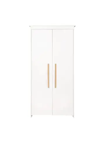 Entdecken Sie den 2-türigen roba Kleiderschrank aus der Serie ‚Lilo‘ – die ideale Lösung für stilbewusste Eltern mit begrenztem Platz im Kinderzimmer. Dieser kompakte Schrank besticht durch sein ruhiges und modernes Dekor und wird schnell zum Highlight in neu eingerichteten Baby- oder Kinderzimmer. Passend zu allen Möbeln der Serie Lilo, fügt er sich nahtlos in jedes Raumkonzept ein. Die praktische Einteilung des Schrankes bietet drei getrennte Fächer mit einer großzügigen Kleiderstange (86 cm lang), die ideal für die Aufbewahrung von Kleidung und sämtlichen Utensilien zur Babypflege geeignet sind. Besonders in kleinen Kinderzimmern beweist dieser Schrank seine Funktionalität. Mit seinem modernen Design und den beiden großen Türen samt Massivholzgriffen aus Buche setzt der Schrank stilvolle Akzente. Dank der sanft schließenden Soft-Close-Scharniere ist das Öffnen und Schließen der Türen eine komfortable Angelegenheit. Die zeitlose weiße Lackierung verleiht dem Kinderzimmer eine moderne Eleganz. Die praktischen Maße von H 190 x B 96 x L 50 cm machen diesen Schrank vielseitig einsetzbar. Der Korpus und die Türen bestehen aus melaminbeschichteter Spannplatte, während die Griffe aus hochwertigem Massivholz gefertigt sind. Die Kollektion ‚Lilo‘ wurde in Deutschland entwickelt und steht für Qualität sowie Funktionalität. Dieser Schrank lässt sich problemlos mit weiteren Möbeln der Serien ‚Lilo‘ oder ‚Anton‘ kombinieren, wie zum Beispiel einem Kombi-Kinderbett oder einer Wickelkommode. Auch ist der Kleiderschrank in Kombination als 3-teiliges Set erhältlich, um das heimische Kinderzimmer komplett ausstatten zu können. Grundmaterial: Spanplatte (melaminbesch.), Fronten: Spanplatte (melaminbesch.), Korpus: Spanplatte (melaminbesch.), Kleiderstange: Metall, Griffe: Massivholz, Rückwand: HDF;