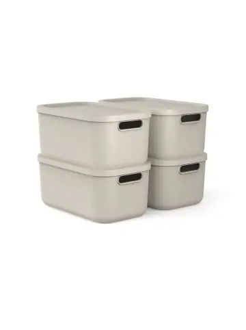 Aufbewahrungsbox 4er-Set | ALBULA LIGHTWir erweitern unsere modernen und beliebten ALBULA Boxen um 2 weitere Größen. Die neuen, designorientierten 12 l und 20 l Boxen passen perfekt zu den bereits bestehenden Größen und ergänzen das komplett durchdachte System. Mit den neuen Modellen, welche in 5 verschiedenen, modernen Farben vorhanden sind, findet jeder die passende Größe sowie Farbe für sich. Somit schaffen Sie in Ihrem Zuhause eine total neue Art und Weise der Ordnung. Dank der offenen, ergonomischen Griffen können die Boxen, auch in beladenem Zustand, einfach getragen werden. Produktinformationen: ein Set besteht aus 4 BoxenDesignorientierte BoxenModular und stapelbarModernes DesignBequeme, offene GriffeEinfach zu reinigenHergestellt aus 100% recyceltem Kunststoff und 100% recycelbar