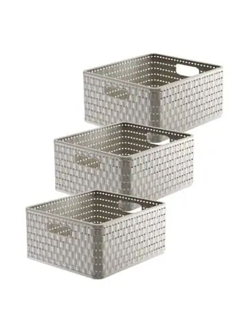 Aufbewahrungsbox „Country“ in Rattan-Optik von Rotho Der wohnliche Look der Aufbewahrungskörbe von Naturmaterialien verbunden mit der Pflegeleichtigkeit von Kunststoff – das ist die ideale Aufbewahrungslinie für den Wohnbereich! Die Körbchen Country sind eine Augenweide. Sie fügen sich in ein naturnahes Wohnambiente im Landhausstil ebenso harmonisch ein, wie in eine moderne Umgebung. Universeller Einsatz im ganzen Haus Die Dekokörbe im Rattan-Design können im ganzen Haushalt eingesetzt werden. Ob in Küche, Bad, Wohnzimmer oder als Spielzeugkiste im Kinderzimmer, sie sind überall beliebte Ordnungsschaffer, da sie einfach abwaschbar und bei Bedarf sogar spülmaschinentauglich sind. Produktinformationen: – Aufbewahrungssystem im Rattan-Look – Aus hochwertigem Kunststoff (PP), BPA-frei – Einfach zu reinigen – Sicher stapelbar – Erhältlich in verschiedenen Grössen und Ausführungen – Hergestellt in der Schweiz