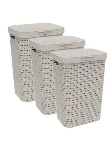 Schmutzwäschesammler Set COUNTRY mit Deckel von Rotho Der Wäschesammler Country von Rotho vereint wunderschönes Design mit der Pflegeleichtheit des Kunststoffs und ist damit ideal für das Sammeln Ihrer Wäsche geeignet. Der Deckel ist mit Filmscharnieren am Unterteil angebracht und lässt sich komplett aufklappen, was für einfaches Befüllen der Wäschekiste sorgt. Die Wäschetonne verfügt ausserdem über zwei praktische Tragegriffe an den Seiten für einfaches Tragen zur Waschmaschine. Hochwertiges Material und gute Hygiene Durch die aufwändige Rattan-Optik hat die Wäschetonne auf allen vier Seiten und dem Deckel Luftlöcher, welche für Luftzirkulation innerhalb der Wäschebox sorgen. Dadurch wird unangenehmen Gerüchen nach längerem Liegen von Schmutzwäsche entgegengewirkt. Das dezente Design passt zu verschiedenen Wohnstilen und so ist der Wäschesammler ideal für das Bade-, Schlaf- oder auch fürs Kinderzimmer geeignet. Der hochwertige Kunststoff und die gute Verarbeitung sorgen für eine lange Lebensdauer des Produkts. Produktinformationen: – Wäschesammler mit zwei bequemen Griffen – Aus hochwertigem Kunststoff (PP), BPA-frei – Schönes Rattan-Muster – Gute Belüftung dank Löchern auf jeder Seite – Leicht zu reinigen – Erhältlich in verschiedenen Farben – Hergestellt in der Schweiz