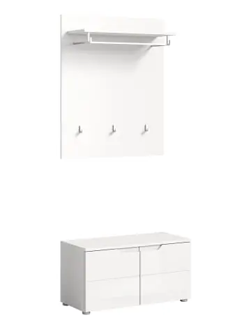 Solero Garderobenmöbel Set Weiß hochglanz, weiß. Haken Stück: 3.Tür Softclose. Diese moderne Garderobenkombination (B/H/T: 80x193x37 cm) verbindet zeitlose Eleganz mit hoher Funktionalität. Die Front in weißem Hochglanz verleiht Ihrem Eingangsbereich einen stilvollen und lichtdurchfluteten Look. Mit zwei Türen und vier variablen Einlegeböden bietet sie großzügigen Stauraum für Kleidung, Accessoires und vieles mehr. Die Softclose-Funktion sorgt für ein geräuschloses und komfortables Schließen der Türen, was die Handhabung besonders angenehm macht. Das Möbelstück besteht aus FSC®-zertifiziertem Holzwerkstoff, wodurch ein nachhaltiger Umgang mit natürlichen Ressourcen gewährleistet wird. Diese Garderobenkombination ist die ideale Wahl für alle, die Wert auf modernes Design, praktische Funktionalität und Umweltbewusstsein legen.
