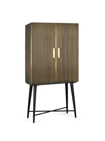 Schrank mit 2 Türen aus Mangoholz und Metall mit bronzefarbener Verkleidung. Höhe: 163 cm. Länge: 85 cm. Breite: 40 cm. Material: Mangoholz und Bronze. Farben: Bronze und Schwarz. Naturholz und Handarbeit, daher mögliche Abweichungen in Farbe und Maserung. Wood