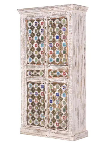 Schrank mit 4 Türen und 2 Schubladen, aus Mangoholz. . Artikelmaße: 185 cm Höhe – 100 cm Länge – 100 cm Tiefe. Artikelgewicht: 92KG. Wood