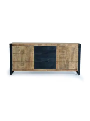 Sideboard mit 2 Türen und 3 Schubladen aus Mangoholz und Metall. Artikelmaße: 80 cm Höhe – 180 cm Länge – 180 cm Tiefe. Artikelgewicht: 82KG. Wood