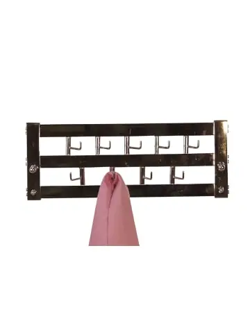 Moderne Wandgarderobe die wenig Platz benötigt aber mit ihren 9 verchromten Kleiderhaken viel aufnehmen kann. Rahmen aus Metall in 4 Trendfarben lieferbar, die 9 drehbaren Kleiderhaken und 4 Metallknöpfe sind verchromt. Ohne Dekoration. Wandmontage. Maße ca. cm: B. 60 x H. 25 x T. 7- Viel Platz- Pflegeleichte Oberflächen- 9 verchromte, drehbare Metallhaken