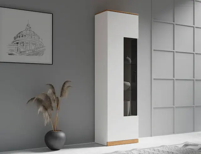 In den Türen wurden dunkles Glas und schwarze Griffe verwendet, was dem Möbelstück Eleganz und zeitlose Ausstrahlung verleiht.. Die flexibel verstellbaren Regalböden ermöglichen eine individuelle Anpassung des Stauraums.. Erhältlich in verschiedenen Farbvarianten, wobei stets teilweise Massivholz verwendet wird.. Dieses Möbelstück wird in Europa produziert. Oberplatte aus Massivholz