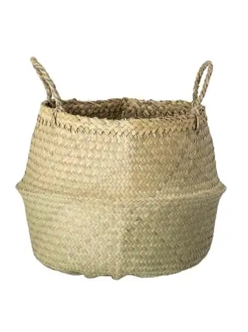 Dieser stilvolle, faltbare Seegraskorb verkörpert den Begriff Multi-Use!Der Korb besteht aus umweltfreundlichem Natur-Seegras und hat stabile Griffe und kann beispielsweise als Tragetasche am Strand verwendet werden. Der Korb eignet sich auch hervorragend zum Aufbewahren von Decken oder Spielzeug im Kinderzimmer und dient sogar als Blumentopf für Zimmerpflanzen.Wenn der obere Teil eingeklappt wird, kann der Korb als Herzstück auf deinem Tisch zum Aufbewahren von Zeitschriften und Zeitungen verwendet werden. Du wirst seine große Vielseitigkeit lieben. H30 x Ø40 cm