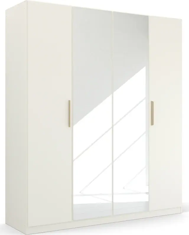 Robuste Griffe aus massiver Wildeiche. Großzügiger Stauraum im Schrankinneren. Überzeugt mit freundlichen Farben in skandinavischem Wohnstil und vollflächig aufgelegten SpiegeltÜren. Fachböden und Kleiderstangen können individuell eingesetzt und in der Höhe verstellt werden. 100% Made in Germany, ausgezeichnet mit dem Blauen Engel und dem Goldenen M