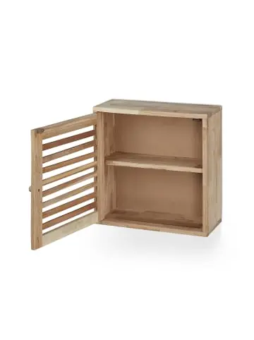 Der kompakte Badwandschrank mit Tür in dekorativer Lamellenoptik ist ideal für kleine Badezimmer oder das Gästebad. Platzsparend und doch geräumig bietet das Badezimmerschränkchen auf 2 Ebenen Platz für Duschbad, Lotionen, Parfums und weitere Badaccessoires. Die Schranktür bleibt dank Magnetverschluss sicher verschlossen. Der Hängeschrank aus edlem Walnussholz schafft auch in Flur und Küche praktischen Stauraum.Wandschrank im Detail – Maße H x B x T: ca. 42 x 42 x 18 cm – Oberes Fach H x B x T: ca. 17,5 x 39 x 14,5 cm – Unteres Fach H x B x T: ca. 20 x 39 x 15 cm – Traglast: max. 3 kg – Gewicht: ca. 3,8 kg – Material: Holz (Walnuss) – Farbe: NaturKleines Schränkchen für das Badezimmer – Ideal für kleine Bäder dank kompaktem Design – 2 Schrankfächer für Bad- und Hygieneartikel – Tür in Lamellenoptik mit cleverem Magnetverschluss – Auch zum Aufhängen in Flur und Küche geeignet – Natürliche Holzmaserung als dekorativer HinguckerLieferumfang – 1x Badschrank in Einzelteilen – Mit Anleitung – Dekoartikel sind nicht im Lieferumfang enthalten