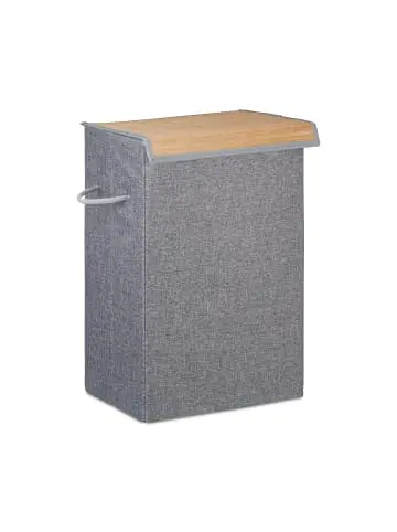 Der Wäschekorb bietet 60 L Stauraum für Ihre alltägliche Schmutzwäsche und Klamotten. Im Bad, Küche oder Keller aufgestellt wird der Wäschesammler zum praktischen Begleiter im Haushalt. Bei Nichtverwendung kann die stabile Wäschebox gefaltet und platzsparend verstaut werden. Über einen Deckel mit Klettverschluss erreichen Sie Ihre Wäsche ohne große Mühe. Der Wäschekorb wird in verschiedenen Farben angeboten.Details des Wäschekorbes rechteckig – Größe Gesamt H x B x T: ca. 60 x 40 x 30 cm – Fassungsvermögen: ca. 60 L – Gewicht: ca. 2 kg – Material: Polyester, Vlies-Gewebe, BambusWäschesack mit Deckel – Bambus-Stoff-Look – Flexibler Deckel mit Klettverschluss- 2 seitliche Griffe aus Baumwolle- MDF-Platte zur Bodenstabilisierung – Faltbar und platzsparend zu verstauenAnwendungshinweis:Der Wäschkorb ist nur für trockene Wäsche geeignet. Es sollte darauf keine schweren Gegenstände abgelegt werden.Lieferumfang – 1 x faltbarer Wäschekorb in Einzelteilen – Dekoartikel sind nicht im Lieferumfang enthalten