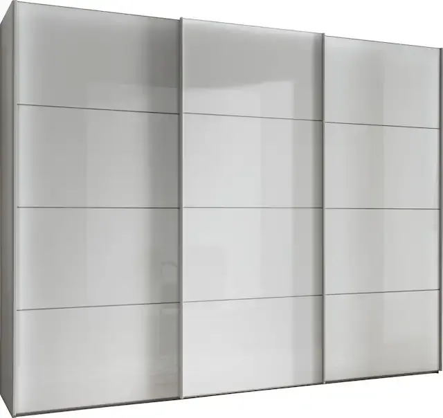 Die eleganten Glasoberflächen sind unempfindlich gegenüber Druckstellen und Kratzern. Individuell höhenverstellbare Schrankinneneinteilung. Alle Korpusteile werden durch Excenter langfristig in einer stabilen und sicheren Verbindung gehalten. Die hochwertigen Führungsschienen und Beschläge ermöglichen ein lautloses Öffnen bzw. Schließen der Schwebetüren. Erstklassige Qualität „Made in Germany“